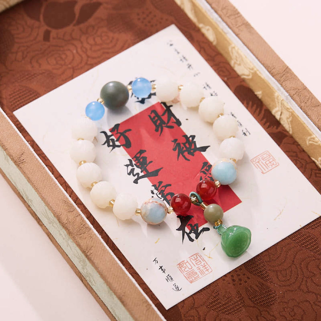 Gold-Sheen Jade Accents: “Youqianhua” 有钱花 bead represents abundance and flow, grounding the piece with blessings for both worldly and spiritual wealth.